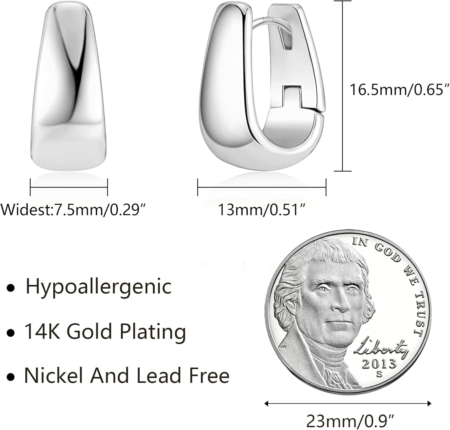 925 Sterling Silver Earrings Small Chunky Silver Earrings for Women Small Hoop #OWK010
