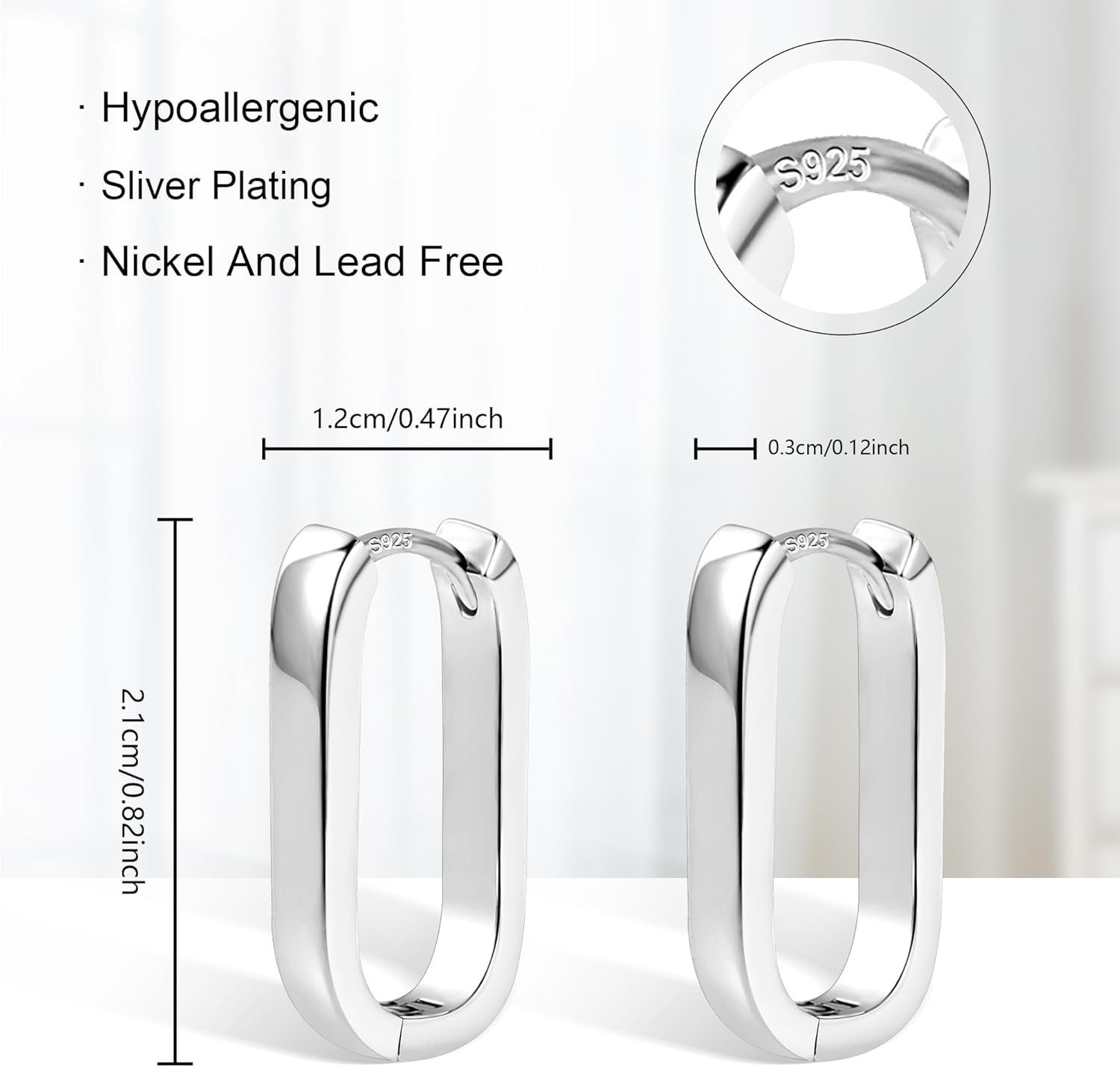 925 Sterling Silver Hoop Earrings for Women Small Square #OWK009