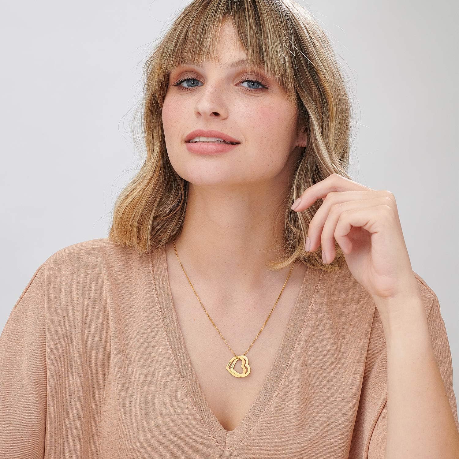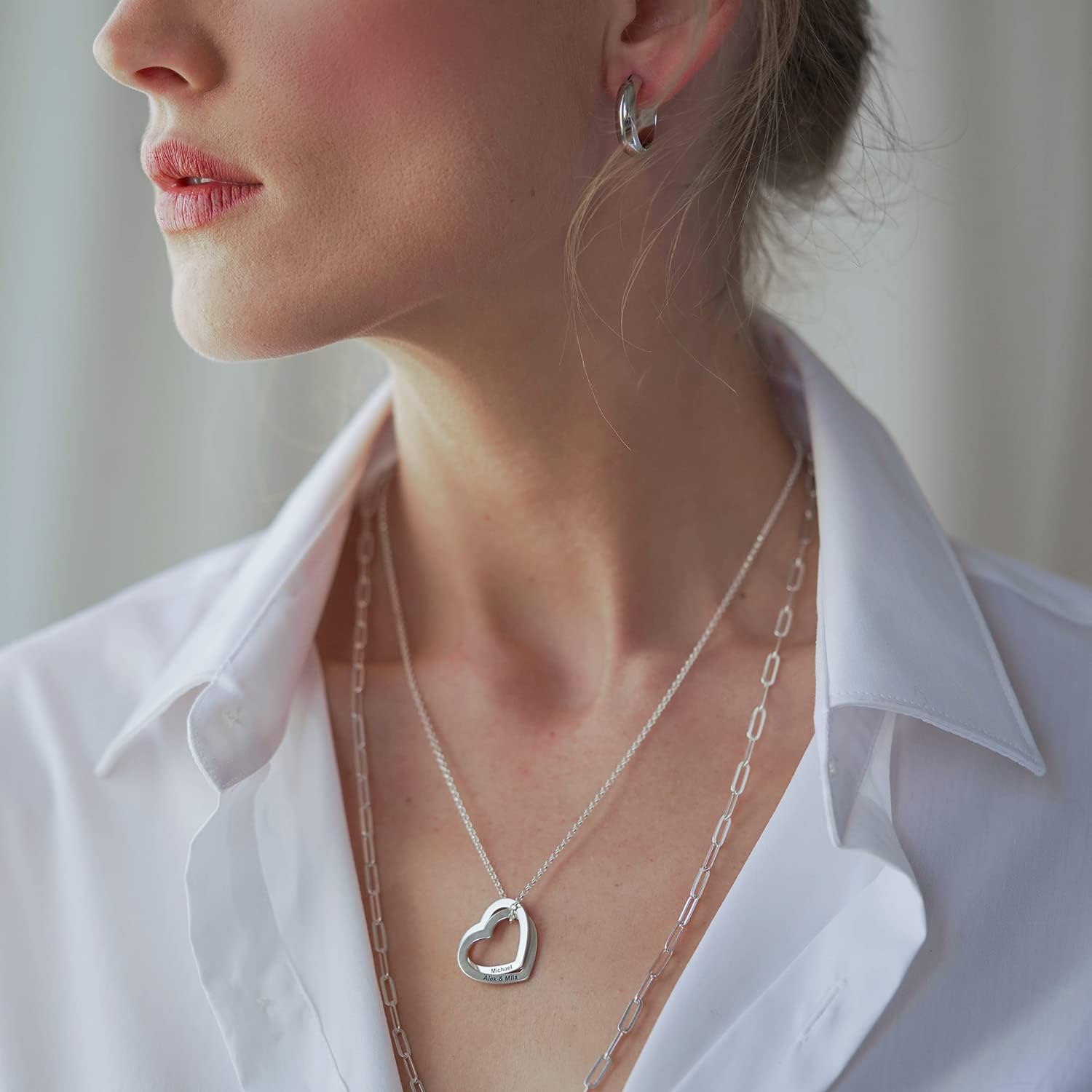 925 Sterling Silver Custom Personalized Love Locked Hearts Necklace with Names - Custom Engraved Couple Name Inscription - Two Interlocking Heart Pendant Gift for Women Wife Her